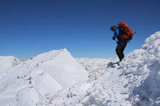 沢をつめると,尾根筋まで急坂を登ります。尾根筋に出ると,山頂まで2~3キロメートルの長さにわたり,カタクリがえんえんと咲いています。まるで天国の花園のようです。